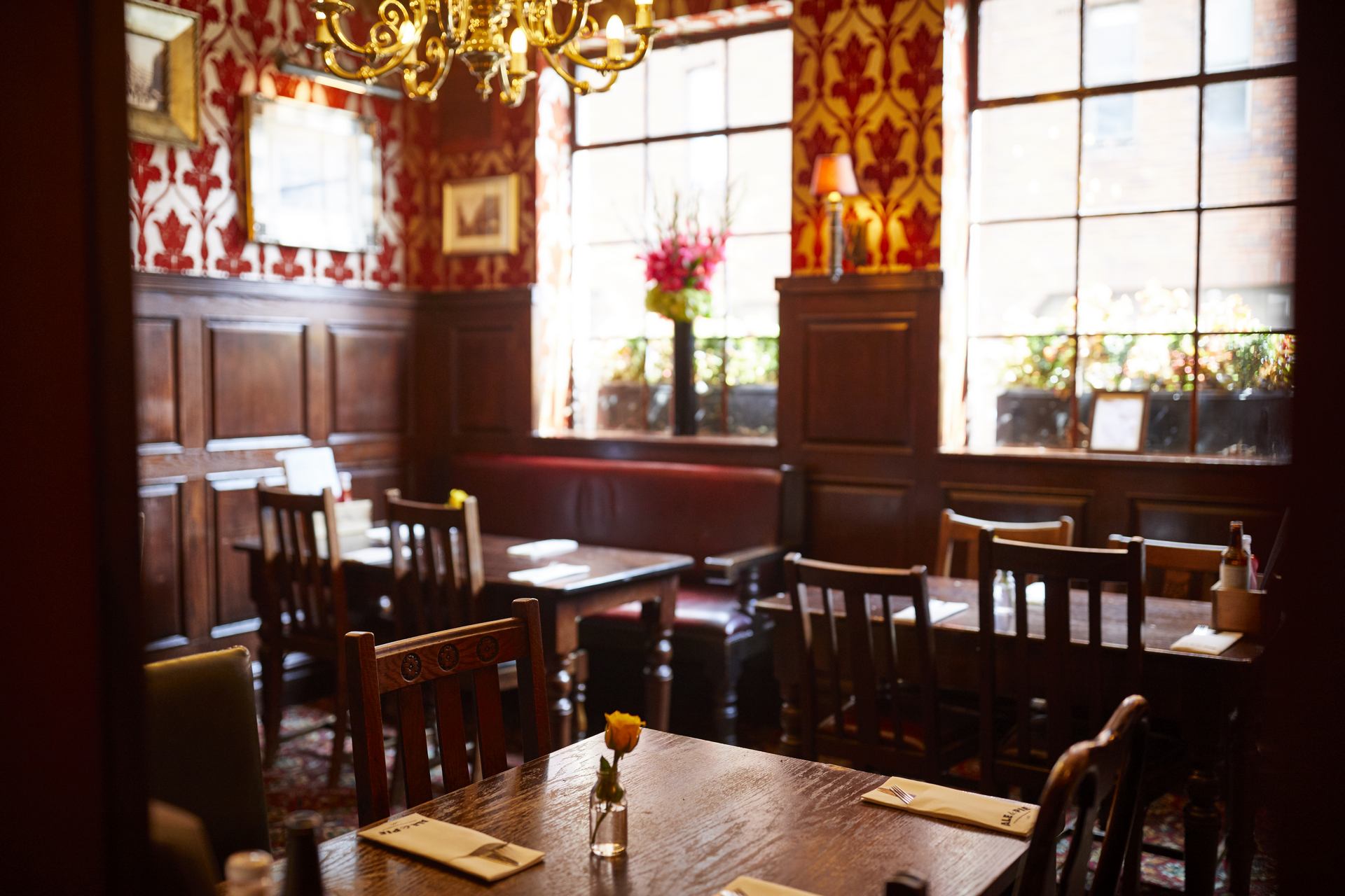 Our smaller area, which can be made more private with the aid of a curtain, accommodates up to 35 standing guests, or seats 17-20. It's a secluded and stylish spot, ideal for celebratory meals or a post-work function.