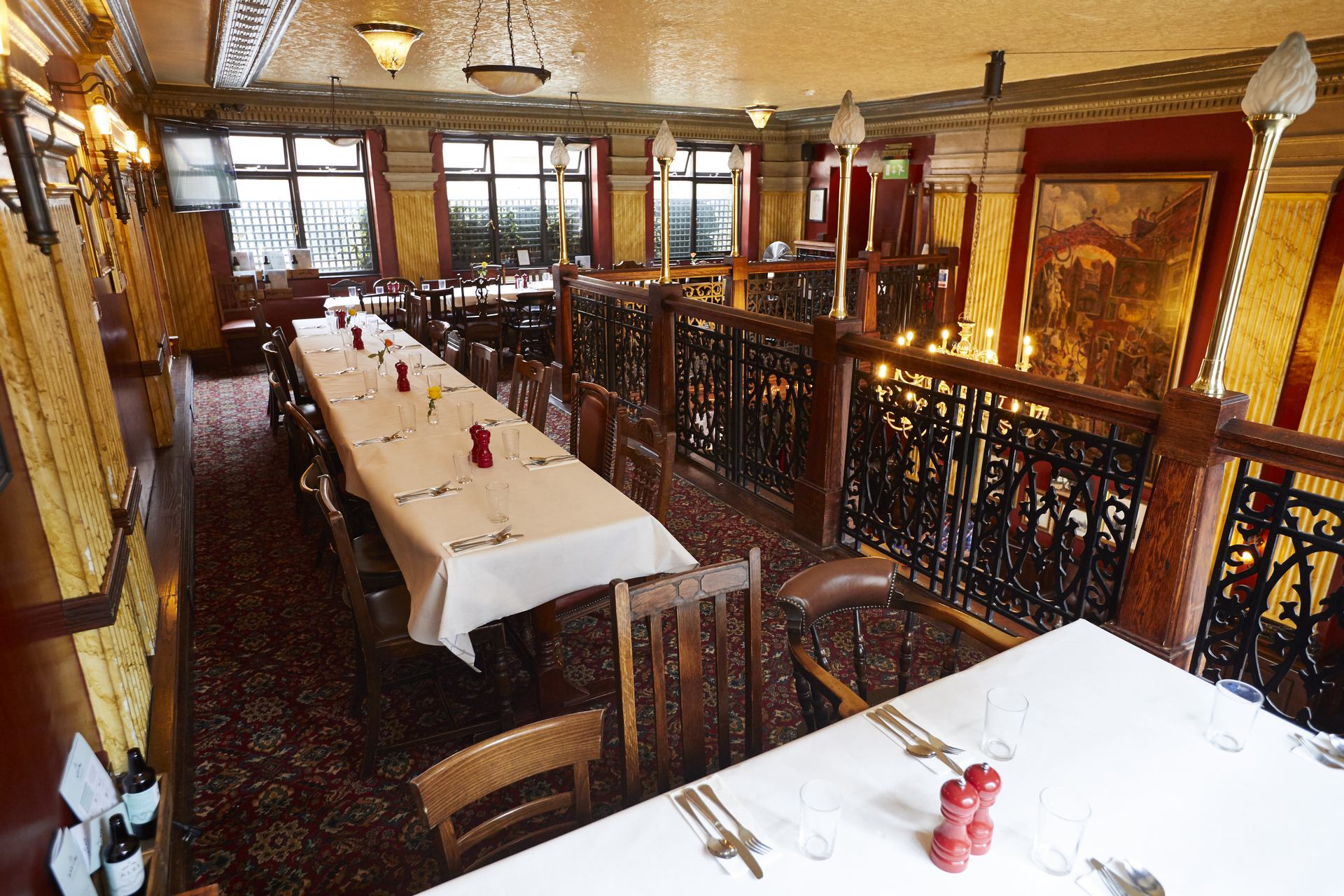 The Mezzanine lends itself perfectly to larger parties, with room for up to 70 standing guests. This area can also be arranged for a sit down meal for 45 diners ~ it's entirely up to you. Menus can be designed specially to your needs and buffets can also be provided.
